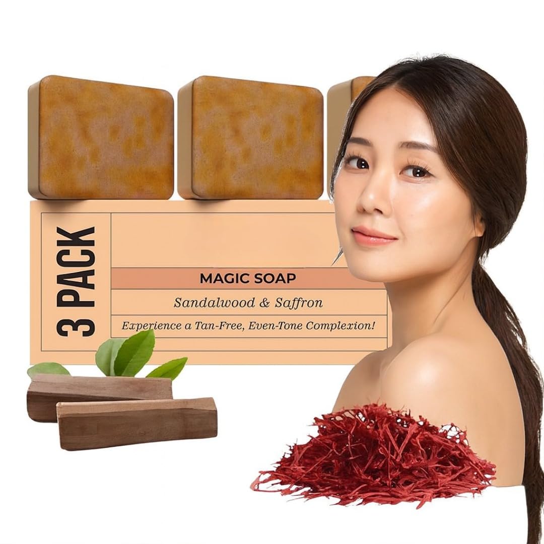Magic Soap With Sandalwood and Saffron Handmade Bath Soap, Paraben Free, Skin Brightening for Men and Women, Chandan Kesar Formula
