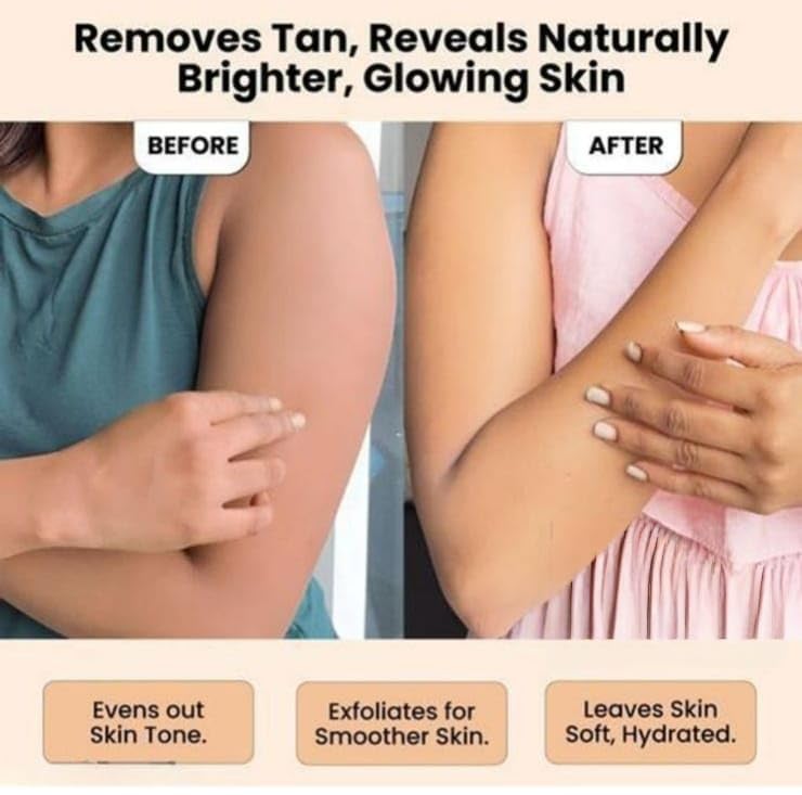 - DE-TANNING FORMULA: Helps fade tan lines and brightens skin tone naturally, suitable for regular use on face and body